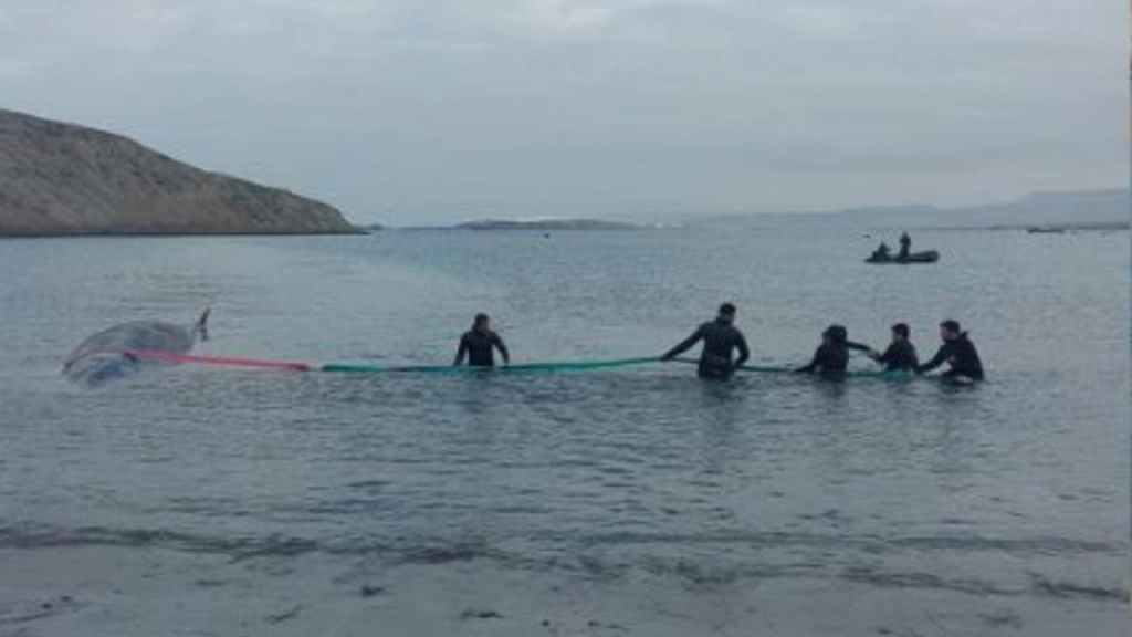 Antofagasta: Despliegue por varamiento de ballena fin en la península de Mejillones