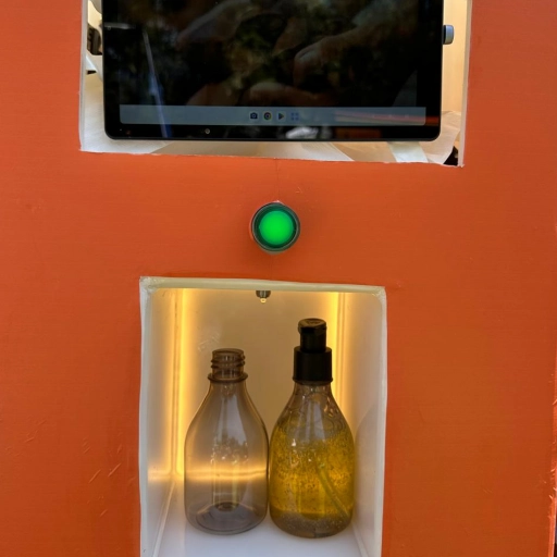 Tras la charla, los asistentes pudieron acercarse al stand de Natura para conocer la máquina fraccionadora y ver su funcionamiento. El dispositivo permite rellenar envases —en esta ocasión, de jabón líquido— promoviendo la reutilización y disminuyendo la generación de residuos.